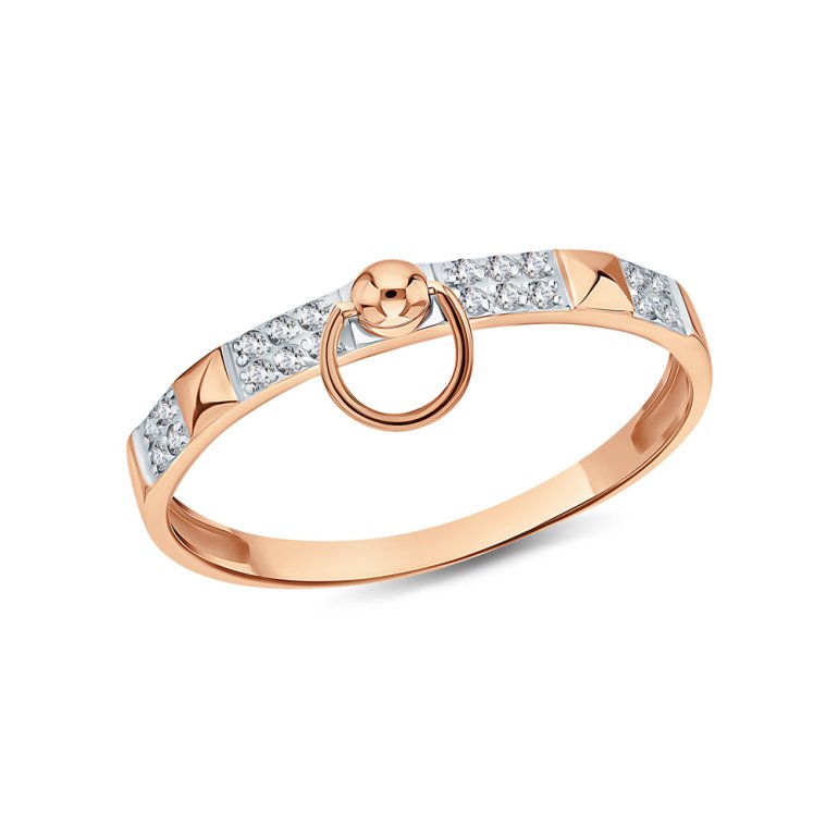 Кольцо, вставка: фианитом бесцветным; Розовое золото 585 пробы.