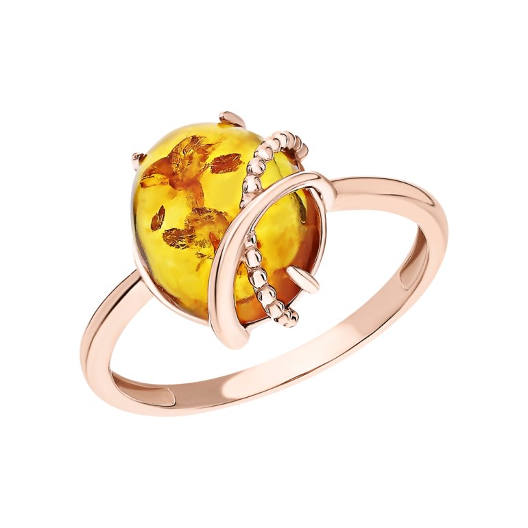 Кольцо с 1 янтарем, тип огранки Б; Розовое золото 585 пробы.