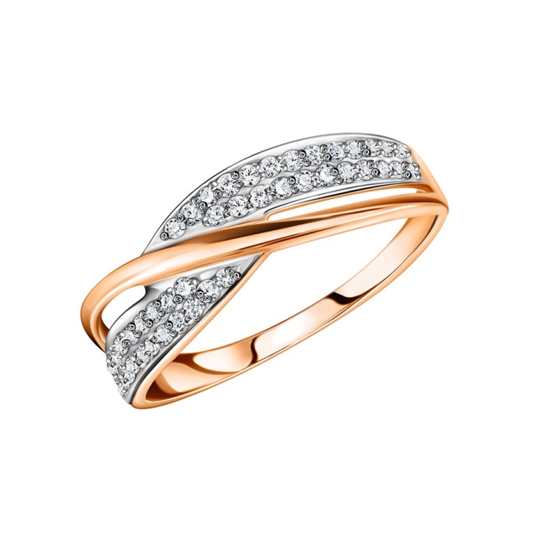 Кольцо с 48 бриллиантами, 0.103 карат, огранка круг 17 граней, цвет 2, чистота 2, тип огранки Б; Розовое золото 585 пробы.