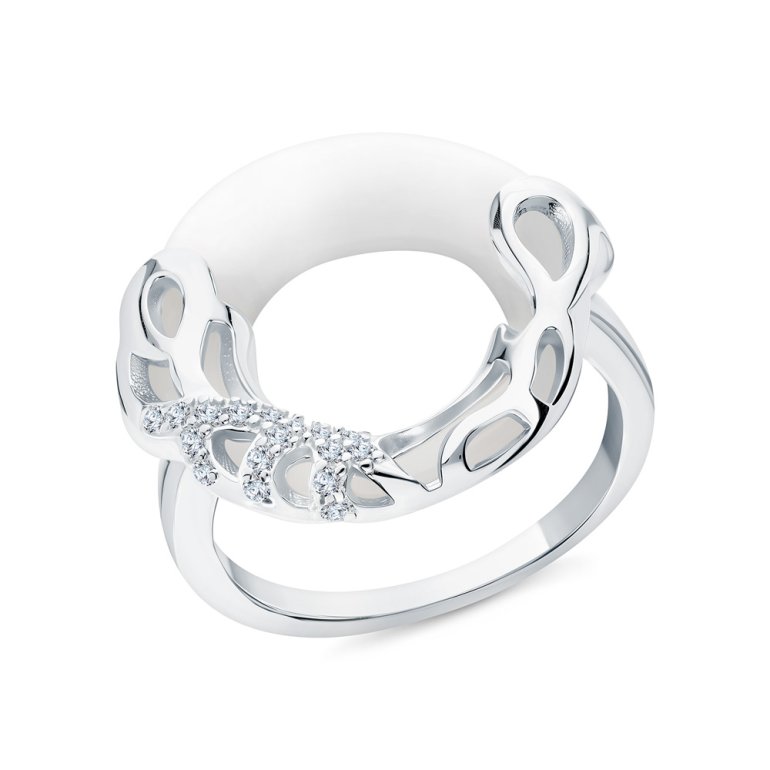 Кольцо, вставка: керамика белая;  фианитом бесцветным; Серебро 925 пробы.