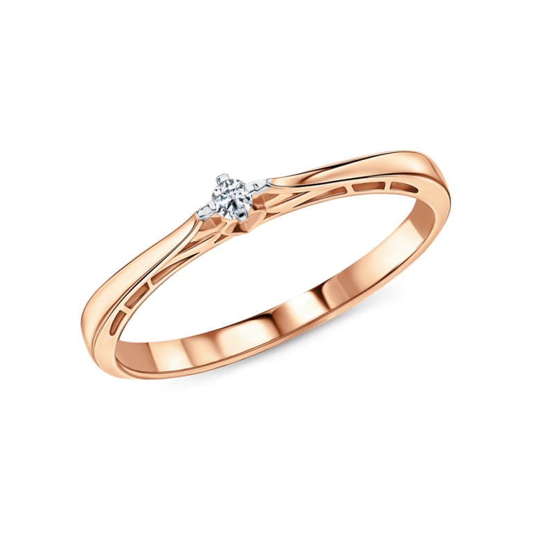 Кольцо с 1 бриллиантом природным, 0.029 карат, огранка круг 57 граней, цвет 4, чистота 6, тип огранки А; Розовое золото 585 пробы.