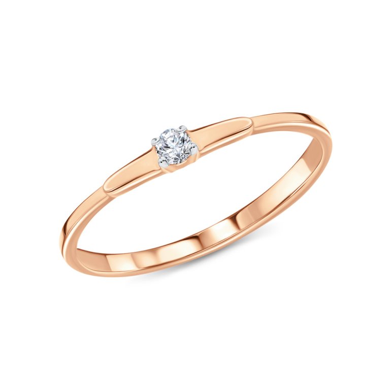 Кольцо, вставка: фианитом бесцветным; Розовое золото 375 пробы.