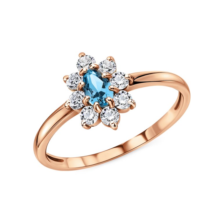 Кольцо с 1 топазом свисс, 0.257 карат, тип огранки Б; фианит; Розовое золото 585 пробы.