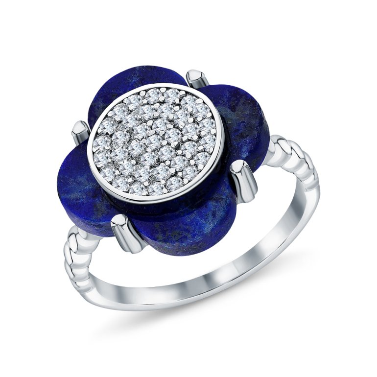 Кольцо с 1 лазуритом; фианитом бесцветным; Серебро 925 пробы.