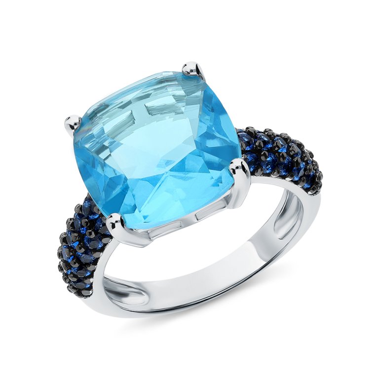 Кольцо, вставка: алпанит голубой;  шпинель синяя синтетическая; Серебро 925 пробы.