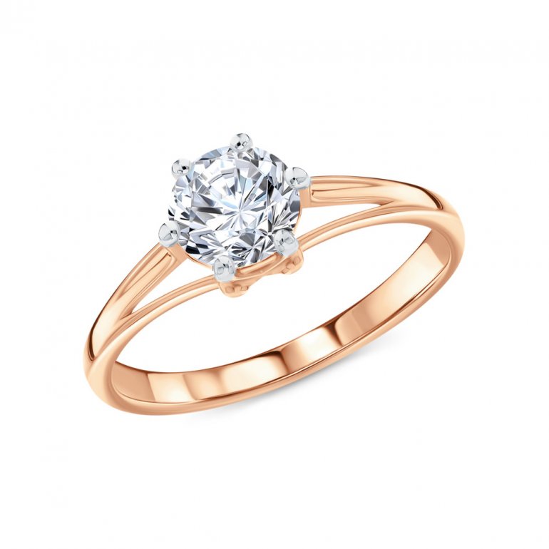 Кольцо, вставка: фианитом бесцветным; Розовое золото 375 пробы.