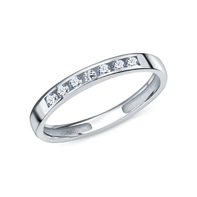 Кольцо с 7 бриллиантами природными, 0.16 карат, огранка круг 57 граней, цвет 3, чистота 6, тип огранки А; Белое золото 585 пробы.