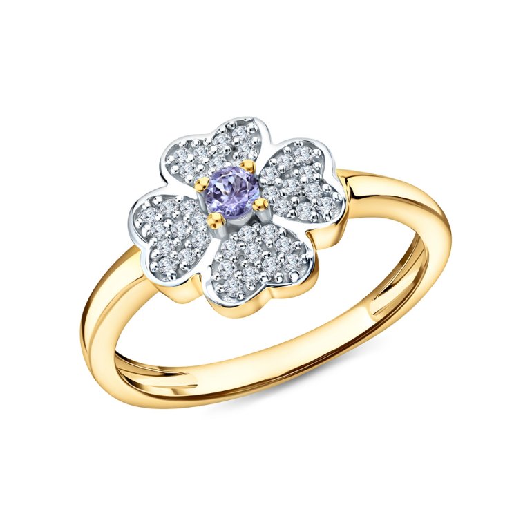 Серебряное кольцо с фианитами и танзанитами природными S43037-K9P-01 Кольца SUNLIGHT | V4.Ru: Маркетплейс