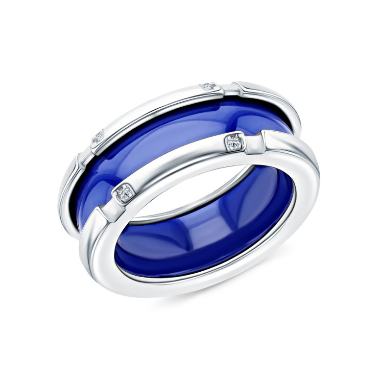 Кольцо, вставка: керамика синяя;  фианитом бесцветным; Серебро 925 пробы.