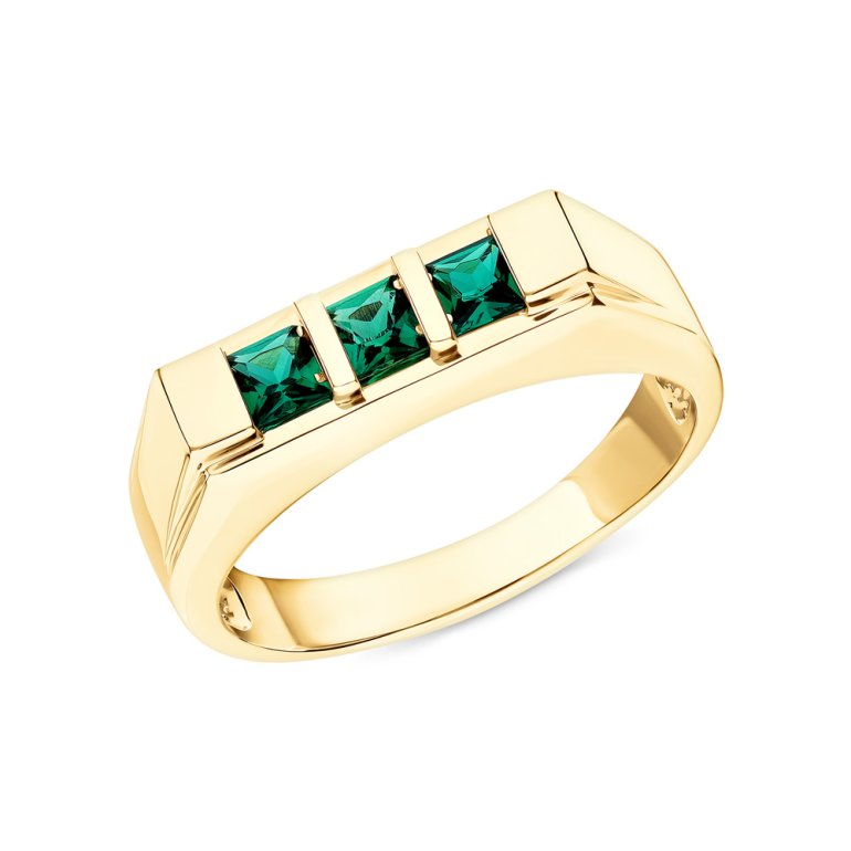 Кольцо с 3 гидротермальными изумрудами, 0.566 карат, тип огранки Б; Желтое золото 585 пробы.