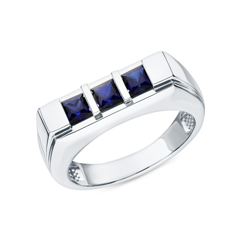 Кольцо с 3 сапфирами синтетическими, 0.833 карат, тип огранки Б; Белое золото 585 пробы.