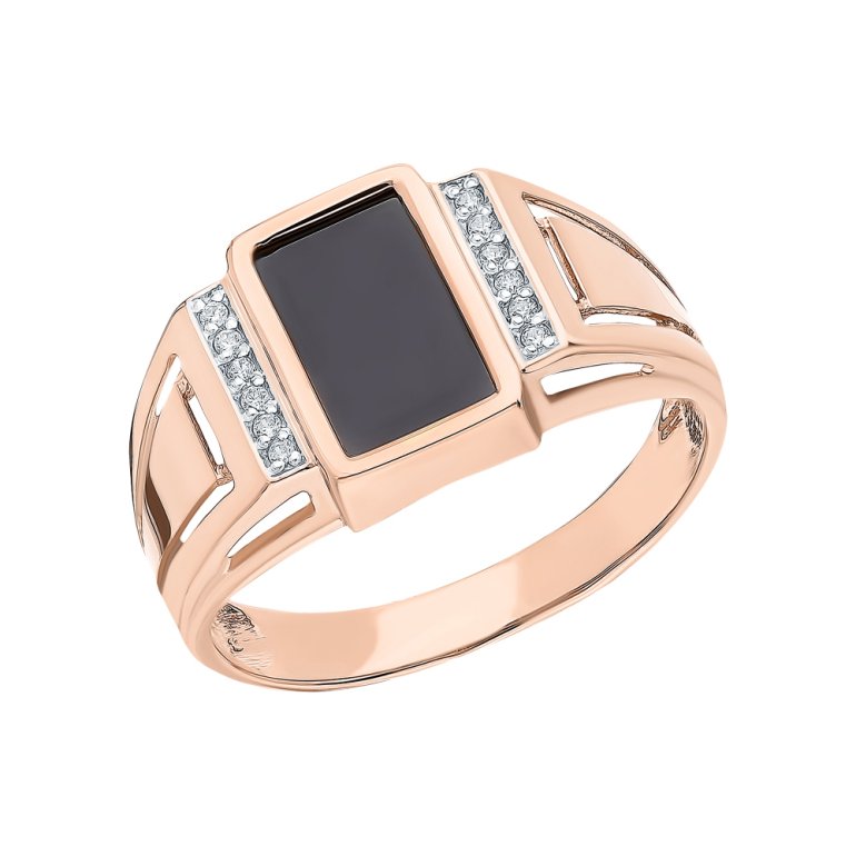 Кольцо, вставка: фианит бесцветный;  фианит черный; Розовое золото 585 пробы.