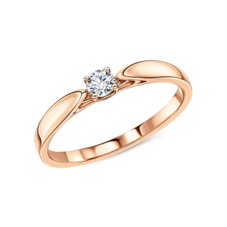 Кольцо с 1 бриллиантом природным, 0.121 карат, огранка круг 57 граней, цвет 3, чистота 6, тип огранки А; Розовое золото 585 пробы.