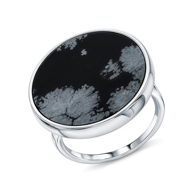 Кольцо с 1 обсидианом снежным; Серебро 925 пробы.