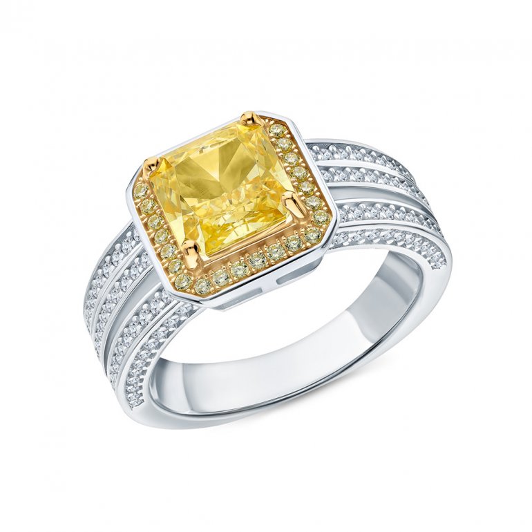 Кольцо, вставка: фианитом бесцветным;  фианит жёлтый; Серебро 925 пробы.