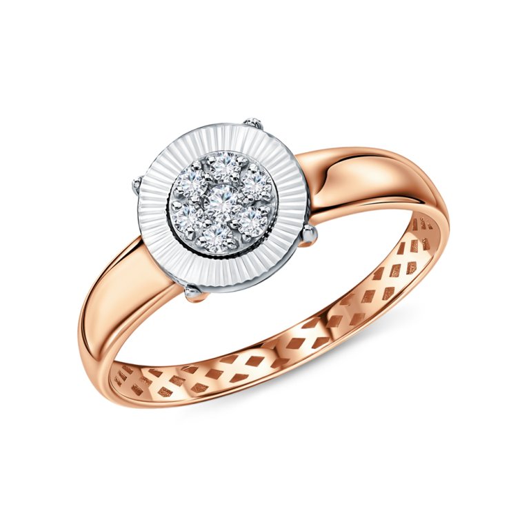 Кольцо с 1 бриллиантом природным, 0.024 карат, огранка круг 57 граней, цвет 3, чистота 6, тип огранки А; 6 бриллиантами природными, 0.08 карат, огранка круг 57 граней, цвет 3, чистота 6, тип огранки А; Розовое и белое золото 585 пробы.