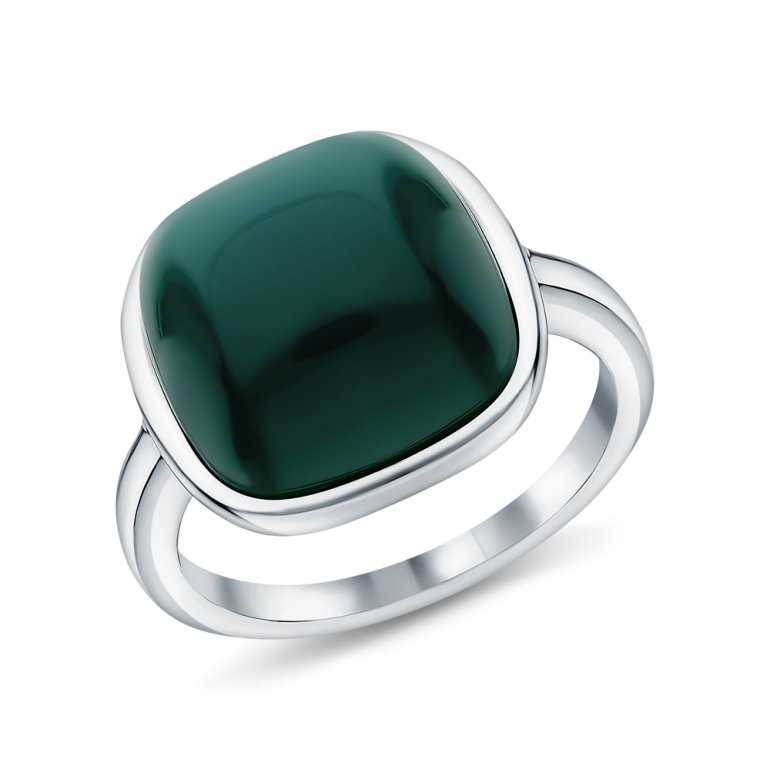 Кольцо с 1 агатом зеленым природным, тип огранки Б; Серебро 925 пробы.