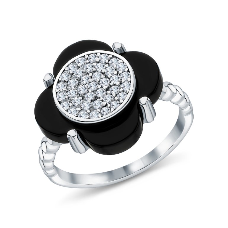 Серебряное кольцо с фианитами и агатами природными S43190-K9W-01 Кольца SUNLIGHT | V4.Ru: Маркетплейс