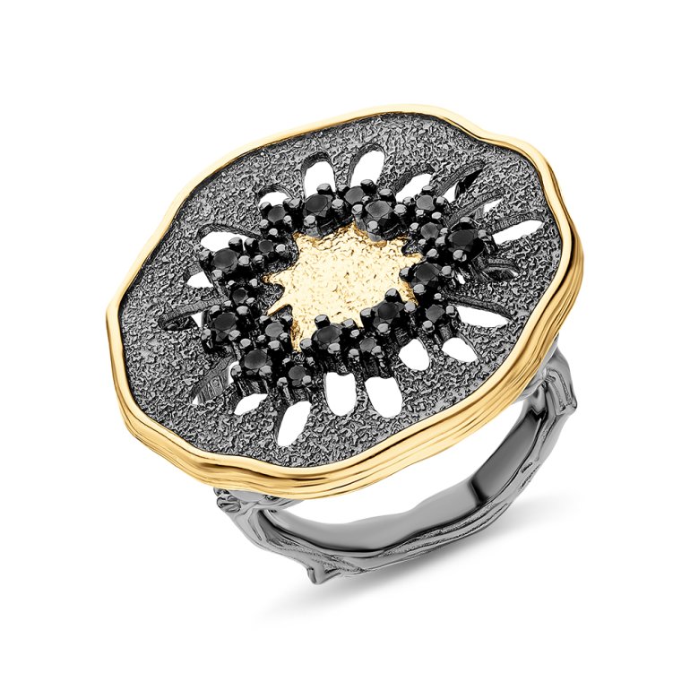 Кольцо, вставка: шпинель черная; Серебро 925 пробы.