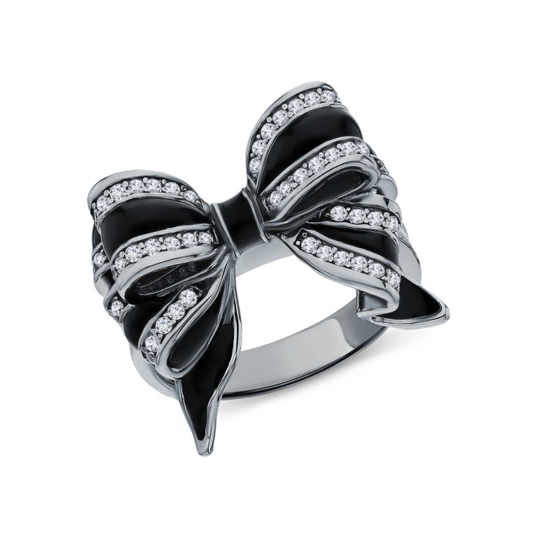 Кольцо, вставка: фианитом бесцветным;  эмаль черная; Серебро 925 пробы.