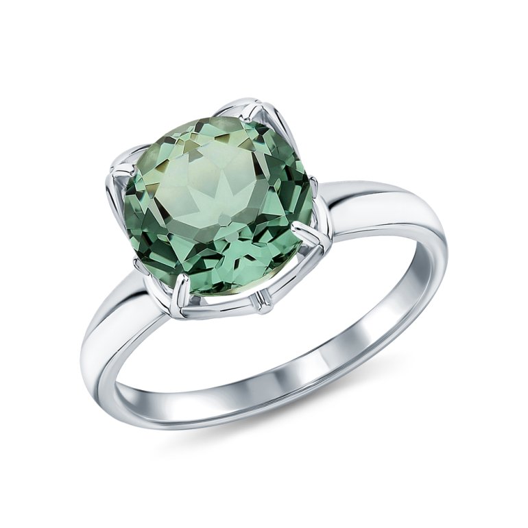 Кольцо с 1 празиолитом природным, 3.33 карат, тип огранки В; Серебро 925 пробы.