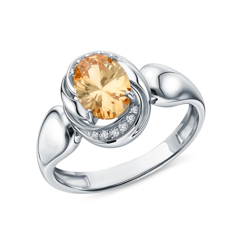 Кольцо, вставка: фианитом бесцветным;  фианит шампань; Серебро 925 пробы.