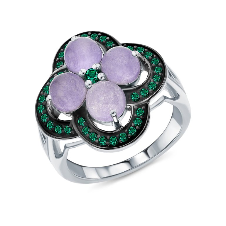 Серебряное кольцо с жадеитом и алпанитом S42918-K9M-01 Кольца SUNLIGHT | V4.Ru: Маркетплейс