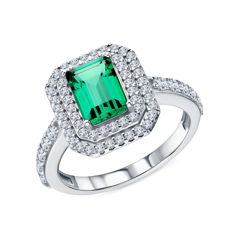 Кольцо, вставка: фианитом бесцветным;  алпанит зеленый; Серебро 925 пробы.