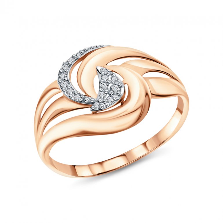 Кольцо, вставка: фианит; Розовое золото 585 пробы.