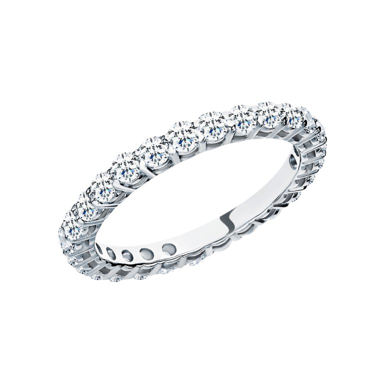 Кольцо с 28 бриллиантами природными, 0.845 карат, огранка круг 57 граней, цвет 3, чистота 6, тип огранки А; Белое золото 585 пробы.