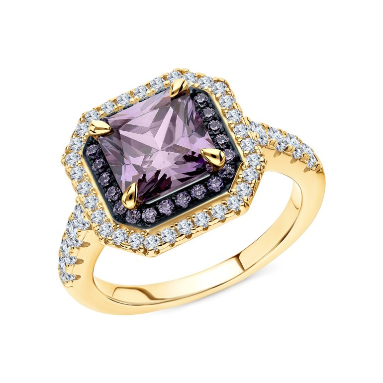 Кольцо, вставка: фианит фиолетовый;  фианитом бесцветным; Серебро 925 пробы.