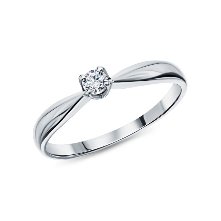 Кольцо с 1 бриллиантом природным, 0.09 карат, огранка круг 57 граней, цвет 3, чистота 6, тип огранки А; Белое золото 585 пробы.