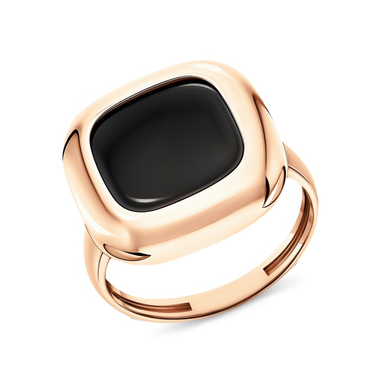 Кольцо с 1 агатом черным, тип огранки Б; Розовое золото 585 пробы.