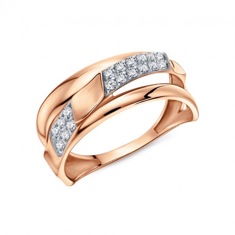 Кольцо, вставка: фианитом бесцветным; Розовое золото 585 пробы.
