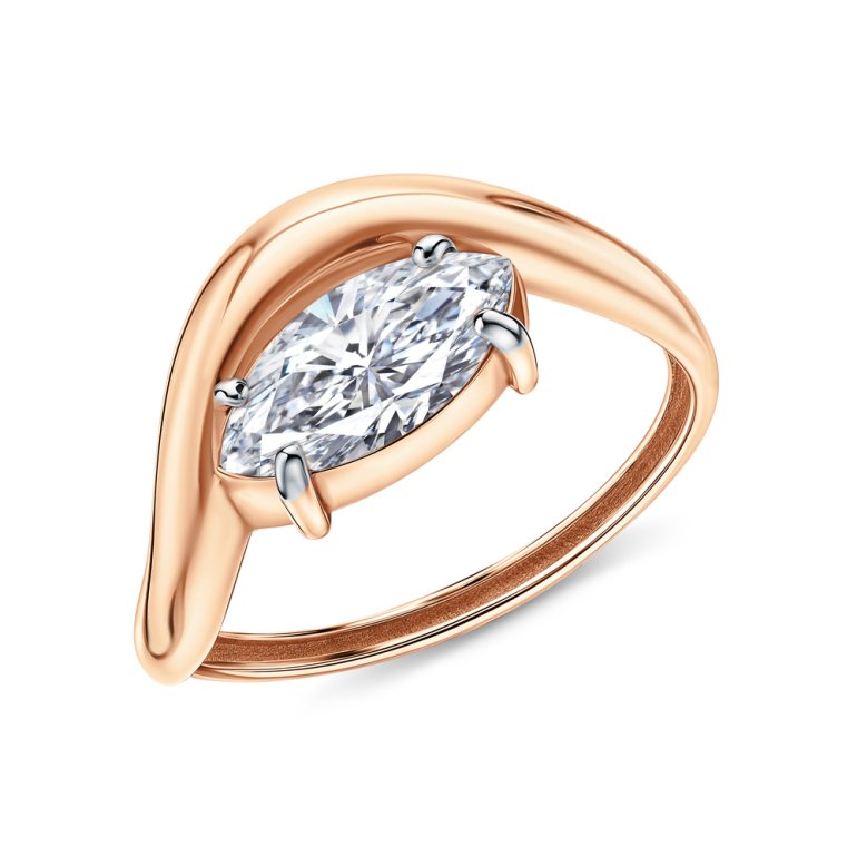 Кольцо, вставка: фианитом бесцветным; Розовое золото 375 пробы.