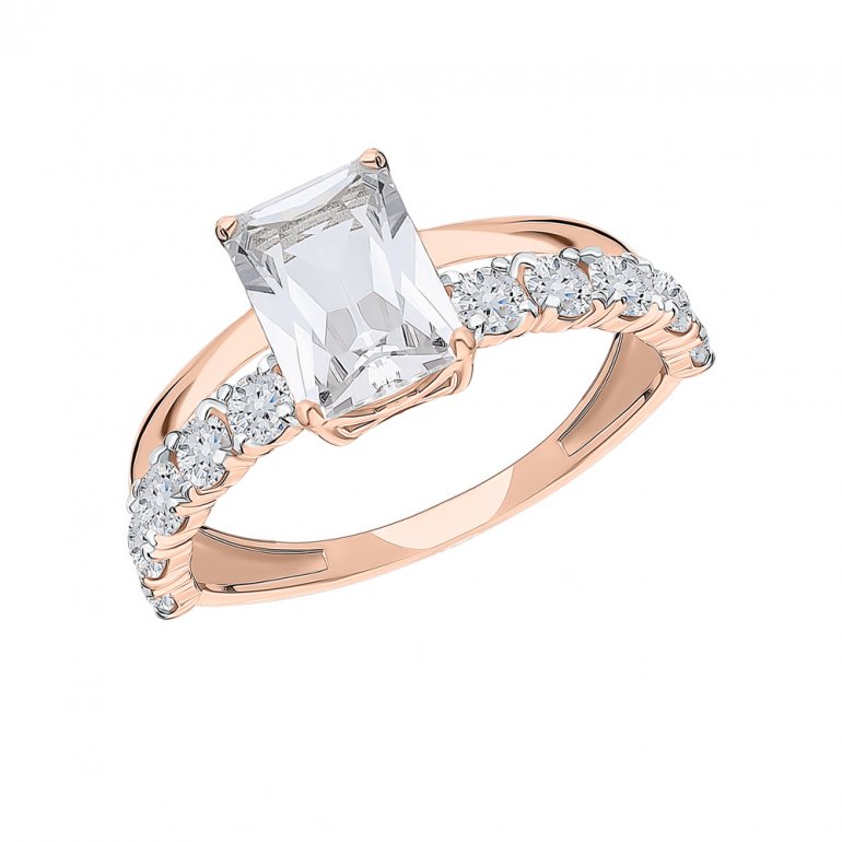 Кольцо с 1 горным хрусталем, 1.315 карат, тип огранки Б; фианит; Розовое золото 585 пробы.