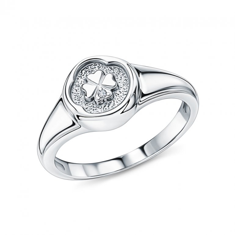 Кольцо с 1 бриллиантом природным, 0.003 карат, огранка круг 17 граней, цвет 2, чистота 2, тип огранки А; Серебро 925 пробы.