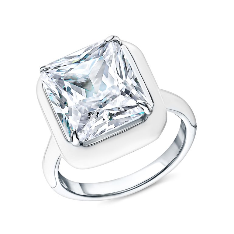 Кольцо, вставка: фианитом бесцветным;  эмаль белая; Серебро 925 пробы.