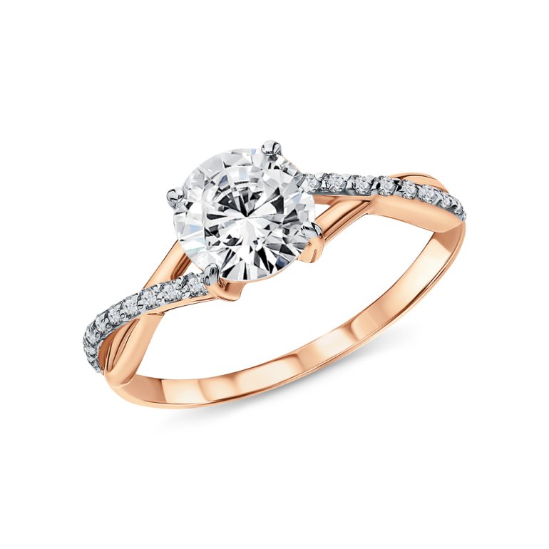 Кольцо, вставка: фианит; Розовое золото 585 пробы.