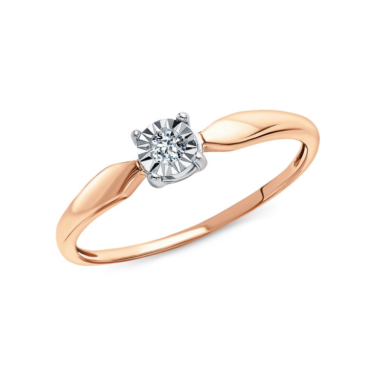 Кольцо с 1 бриллиантом природным, 0.027 карат, огранка круг 57 граней, цвет 3, чистота 5, тип огранки А; Розовое и белое золото 585 пробы.