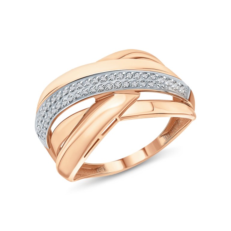 Кольцо, вставка: фианитом бесцветным; Розовое золото 585 пробы.