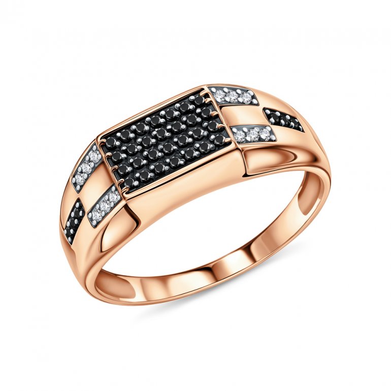 Кольцо, вставка: фианитом бесцветным;  черным фианитом; Розовое золото 585 пробы.