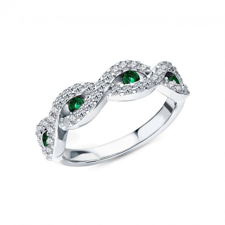 Кольцо, вставка: фианитом бесцветным;  фианит зеленый; Серебро 925 пробы.