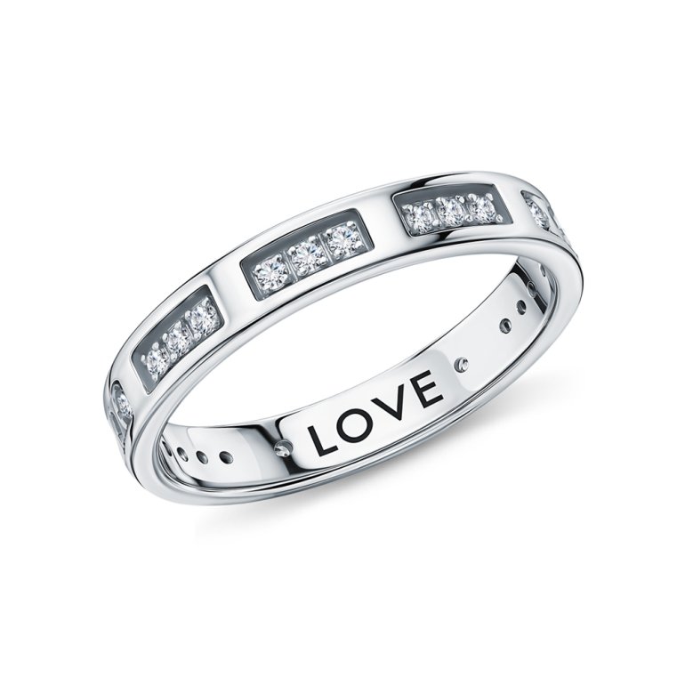 Кольцо с 8 бриллиантами природными, 0.118 карат, огранка круг 57 граней, цвет 3, чистота 6, тип огранки А; 15 бриллиантами природными, 0.106 карат, огранка круг 57 граней, цвет 3, чистота 6, тип огранки А; эмаль черная; Белое золото 585 пробы.