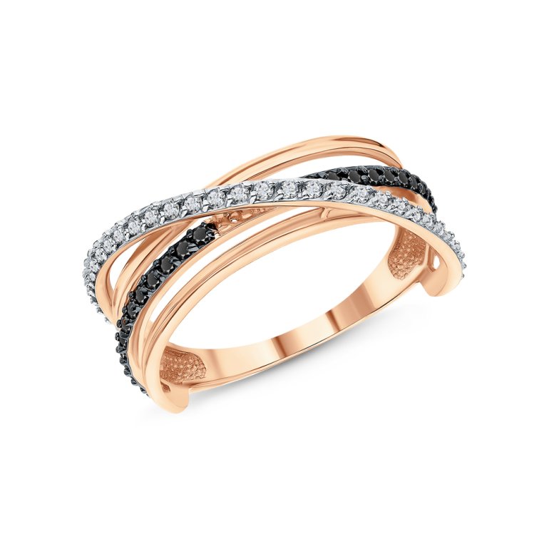 Кольцо, вставка: фианитом бесцветным;  черным фианитом; Розовое золото 585 пробы.