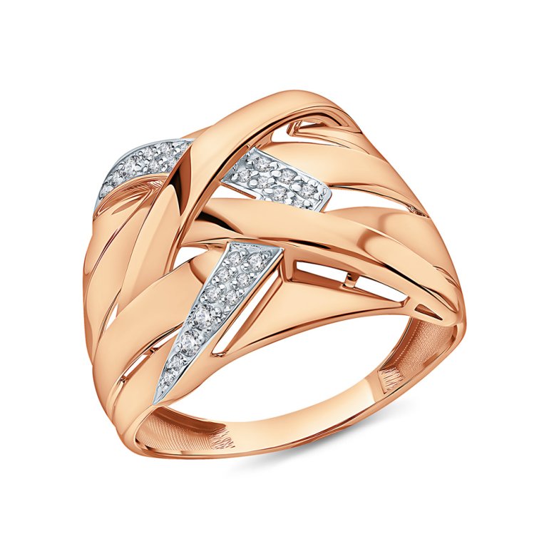 Кольцо, вставка: фианитом бесцветным; Розовое золото 585 пробы.