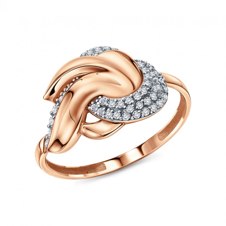 Кольцо, вставка: фианитом бесцветным; Розовое золото 585 пробы.
