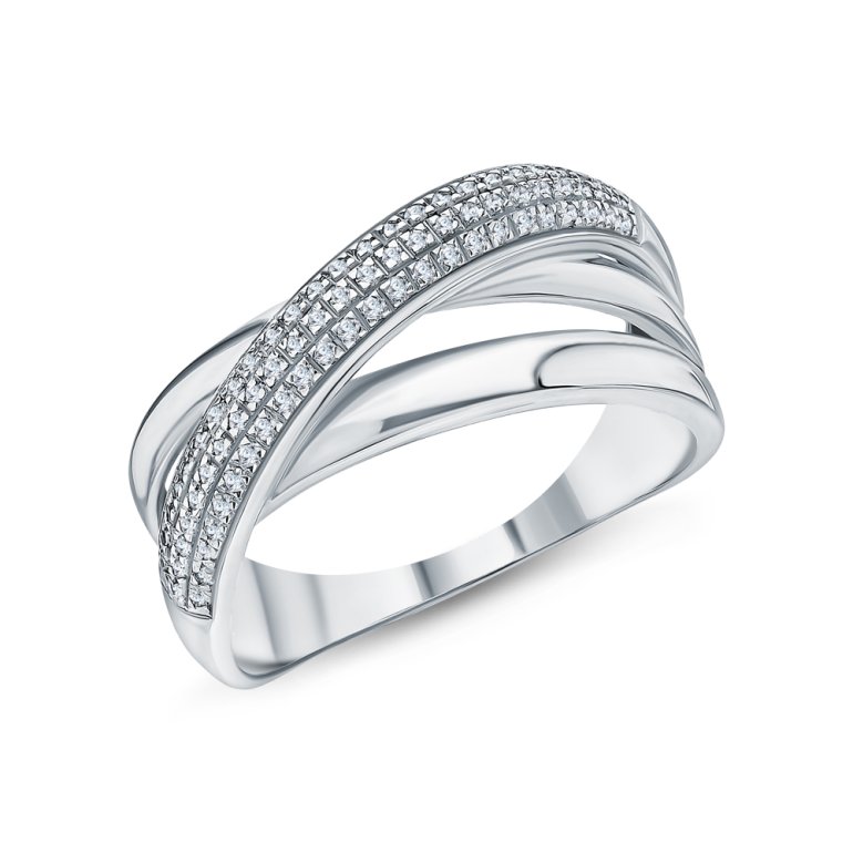 Кольцо с 73 бриллиантами природными, 0.132 карат, огранка круг 17 граней, цвет 2, чистота 2, тип огранки Б; Белое золото 585 пробы.