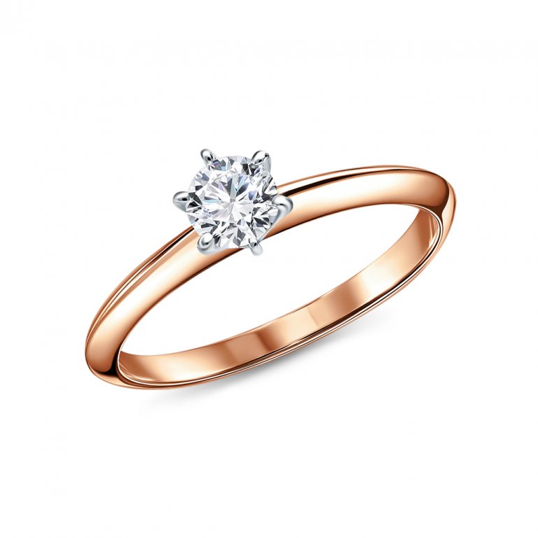 Кольцо с 1 бриллиантом природным, 0.228 карат, огранка круг 57 граней, цвет 4, чистота 6, тип огранки А; Розовое и белое золото 585 пробы.