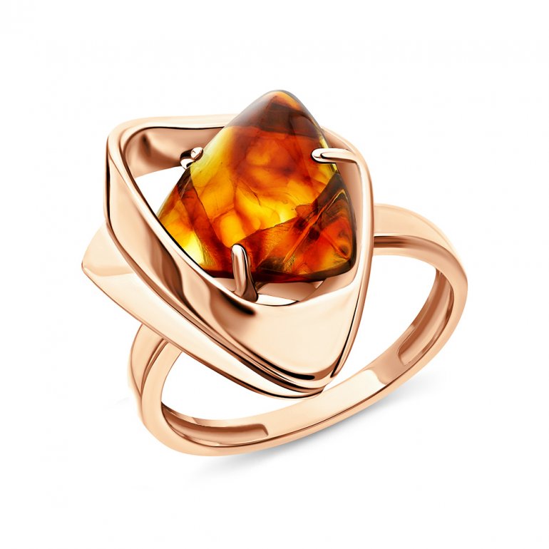 Кольцо с 1 янтарем коричневым, 0.99 карат; Розовое золото 585 пробы.